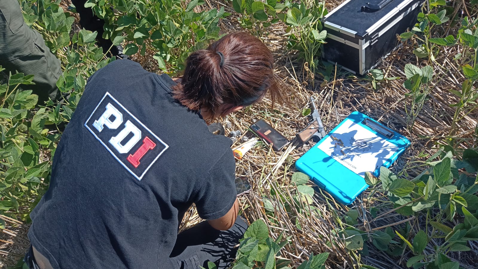 “En momentos que se realizaba un rastrillaje, se produjo el hallazgo en un campo con soja de una pistola calibre 22 y 13 cartuchos intactos”, informaron las fuentes policiales intervinientes sobre el operativo realizado. Cinco de los proyectiles se encontraban colocados en el cargador, mientras que otros ocho permanecían sueltos dentro de una riñonera de color rojo y gris. Además del armamento, los uniformados incautaron un teléfono celular marca Samsung de color rosa y un pantalón de tipo jogging color negro.