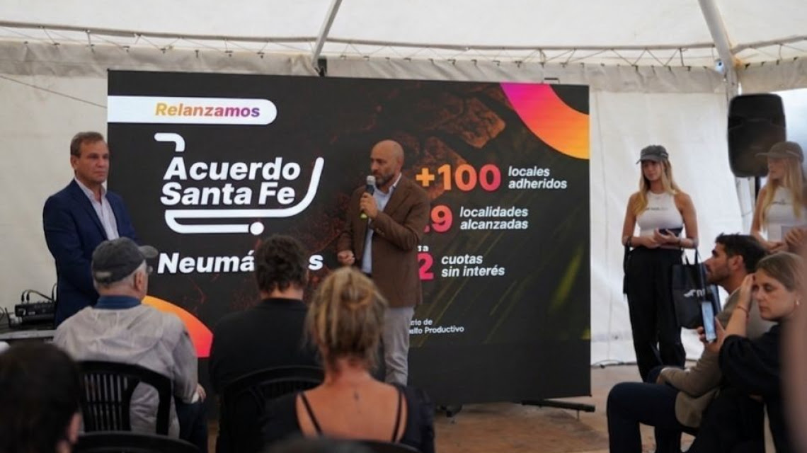 El Gobierno de la Provincia presentó en el marco del Salón del Automóvil que se lleva adelante en Ciudad Industria (Funes), una nueva etapa del programa Acuerdo Santa Fe-Neumáticos. La iniciativa busca promover las ventas, fomentar el consumo en comercios del rubro y garantizar precios de referencia en productos esenciales para la movilidad y la seguridad vial. El ministro de Desarrollo Productivo de Santa Fe, Gustavo Puccini, dijo que “este acuerdo es una herramienta concreta que permite a las familias acceder a neumáticos y servicios de mantenimiento con condiciones accesibles, y a los comercios locales crecer en competitividad”.