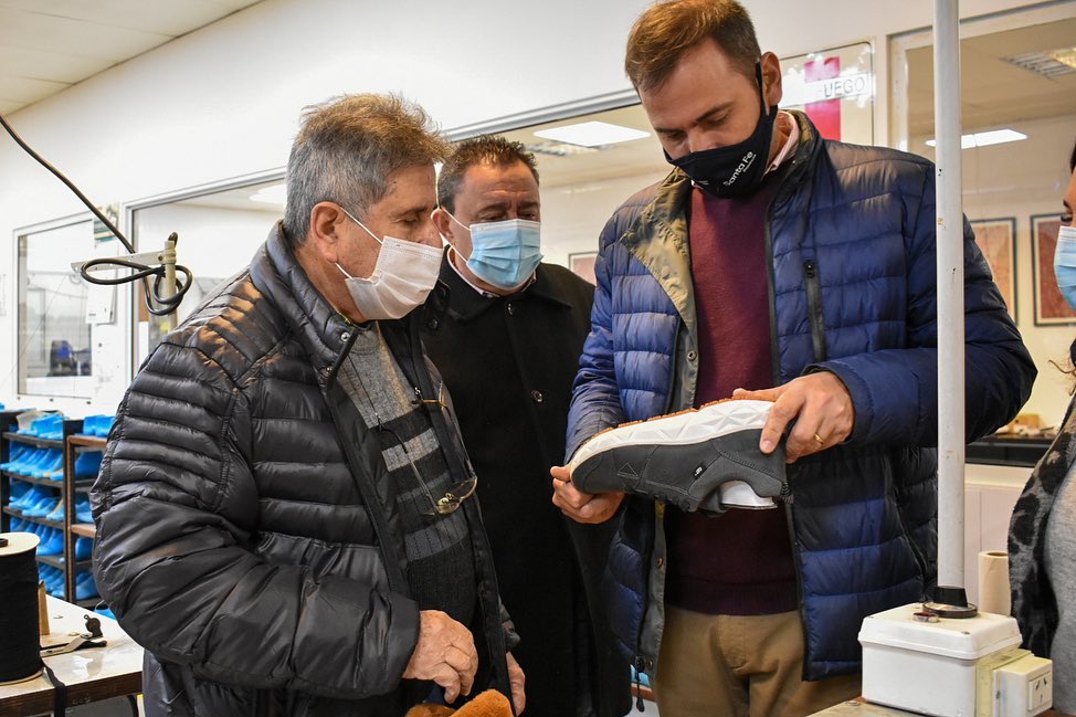 Acompañado por autoridades municipales, recorrió la planta de Grimoldi emplazada en la ciudad, pionera y estandarte en la región en lo que se refiere a la industria del calzado.