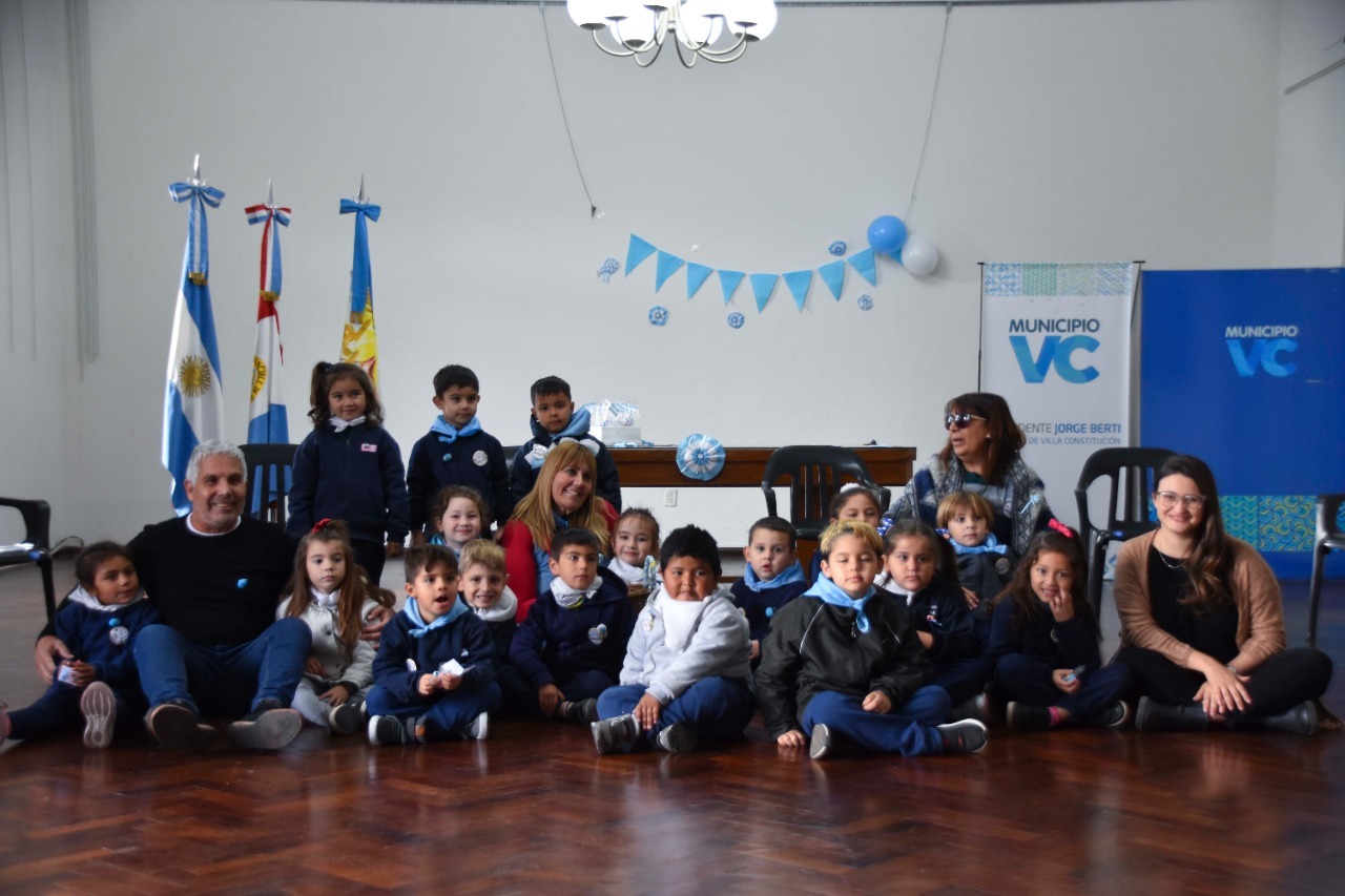 Con motivo de la Semana de Mayo, y cerca de la conmemoración de un nuevo aniversario del “Día de la Patria”, el intendente Jorge Berti recibió la visita de los alumnos y alumnas del Jardín de Infantes N° 313 “Jardín del Paraná”, quienes además de visitar el Palacio Municipal estuvieron recorriendo las distintas oficinas repartiendo escarapelas.